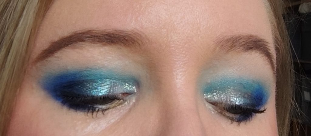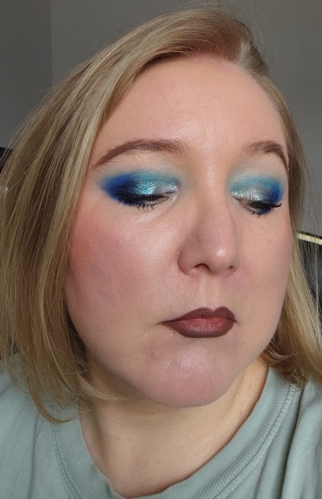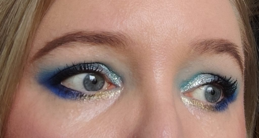 wie ihr seht, habe ich mir diesmal vor allem die Blautöne rausgepickt mit einem kleinen goldenen Highlight am unteren Wimpernkranz.