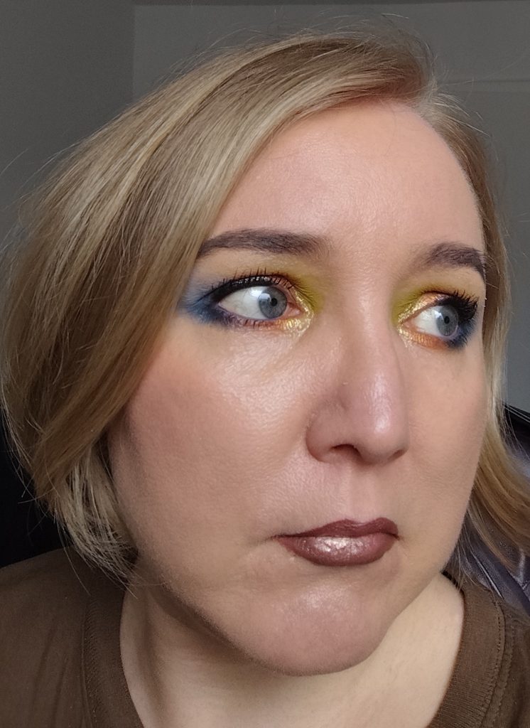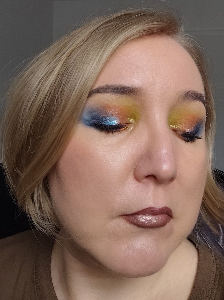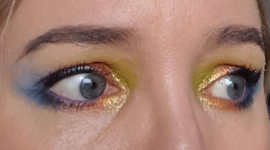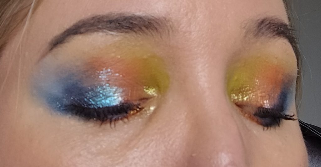 Ich wusste sofort, dass ich den Look mit grün, orange und blau schminken wollte.